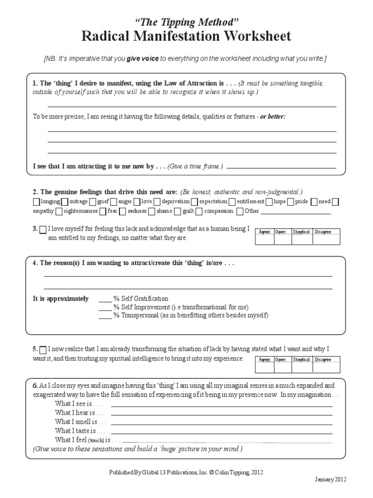Printable Manifestation Worksheet