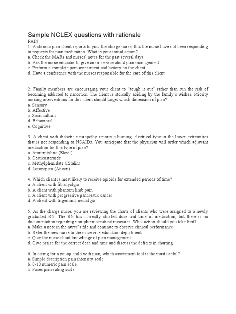 Sample NCLEX Questions With Rationale Analgesic Leukemia