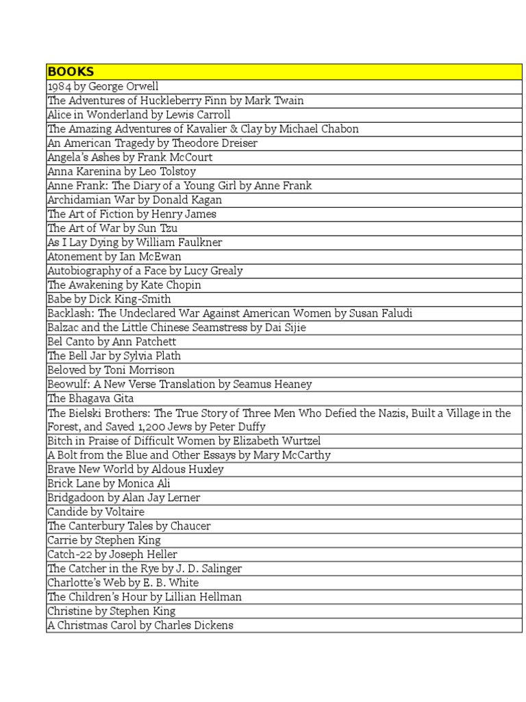 Rory Gilmore Reading Challenge Writers English Language Literature