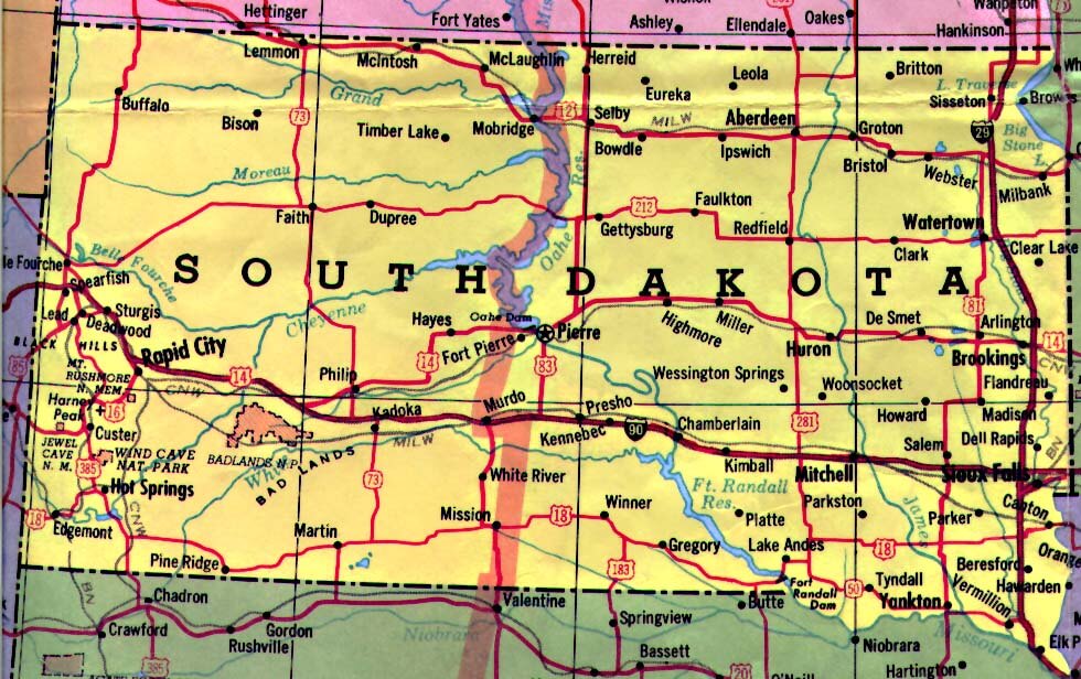 Large Detailed Tourist Map Of South Dakota With Cities, Towns And With